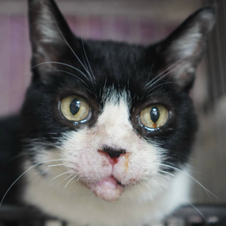 千葉県で保護されました。上顎に穴が開いている口蓋裂あります。